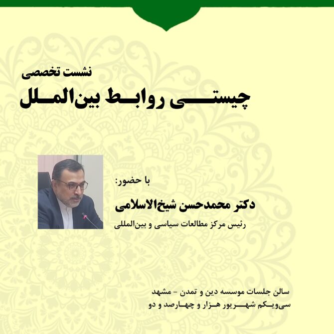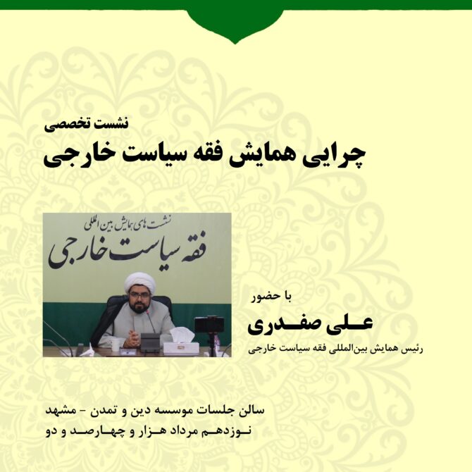 نشست سوم با موضوع: چیستی روابط بین  الملل سومین نشست همایش بین المللی فقه سیاست خارجی با ارائه دکتر محمدحسن شیخ الاسلامی، رئیس مرکز